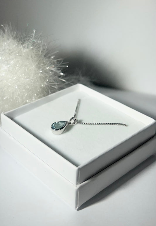 Sølv dråpe smykke. Sky Blue topas