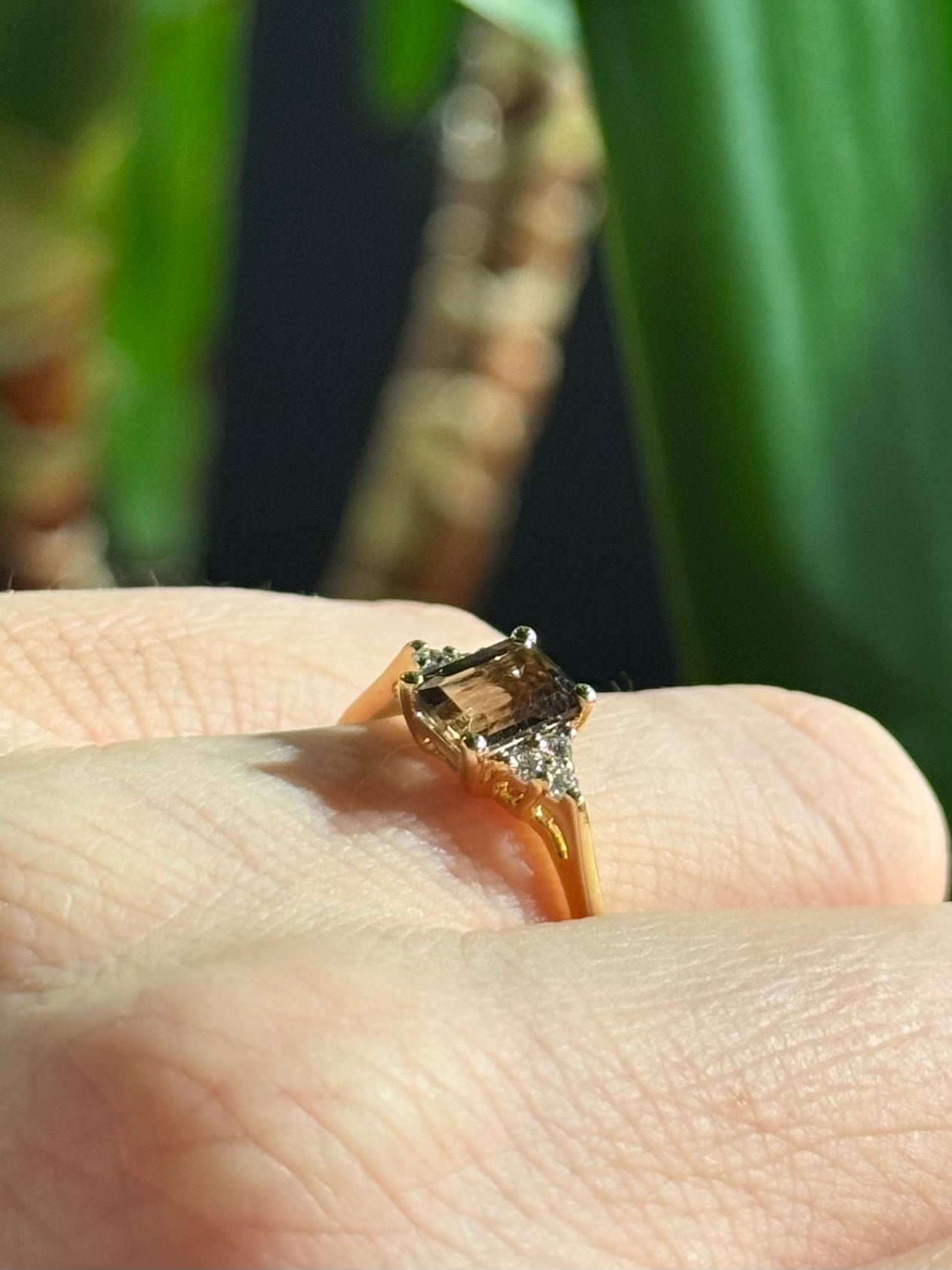 Gullring - røykkvarts - diamanter