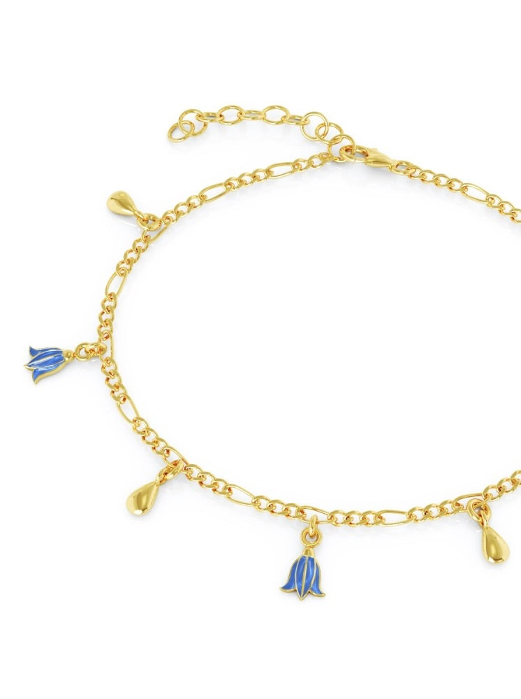 Forgylt sølv armbånd med blå blåklokker glassemalje charms