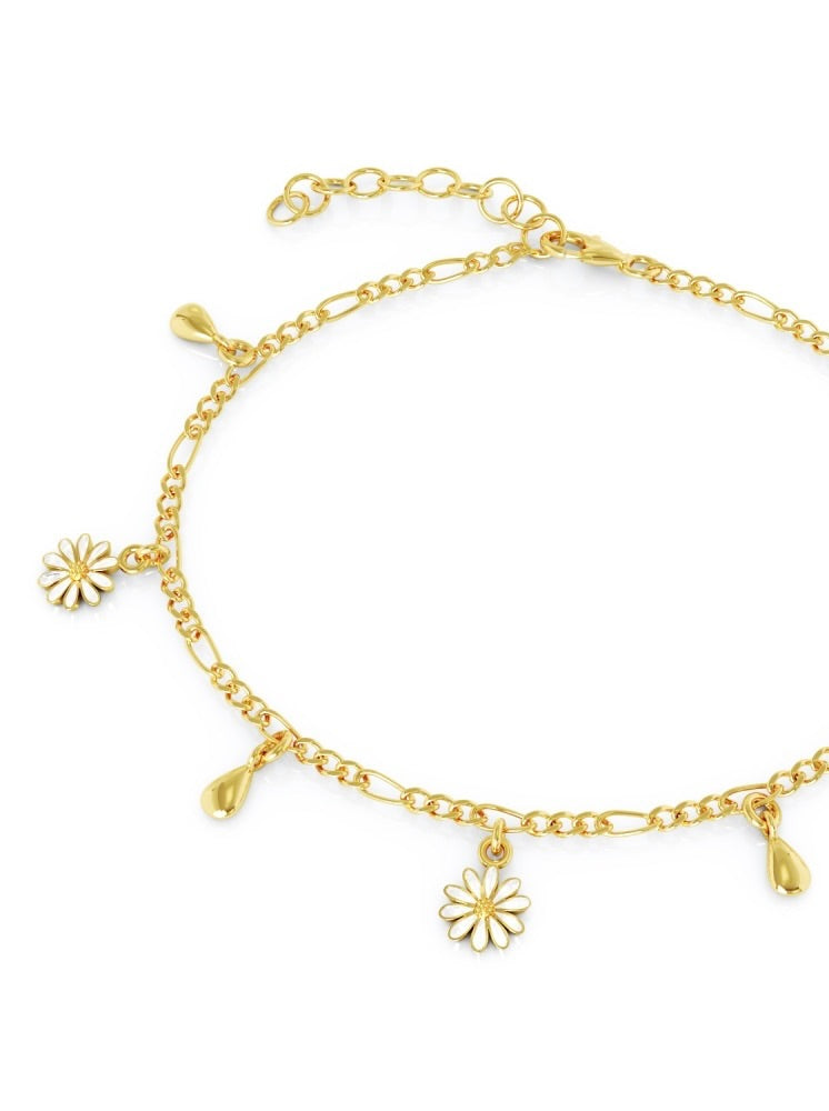 Nydelig armbånd i forgylt sølv med hvit-emaljerte Margrittblomst charms