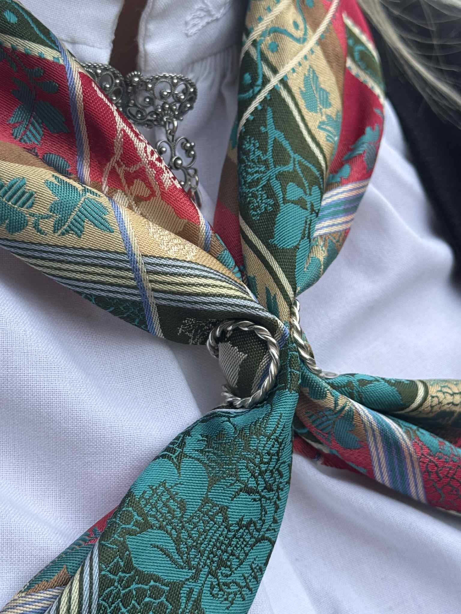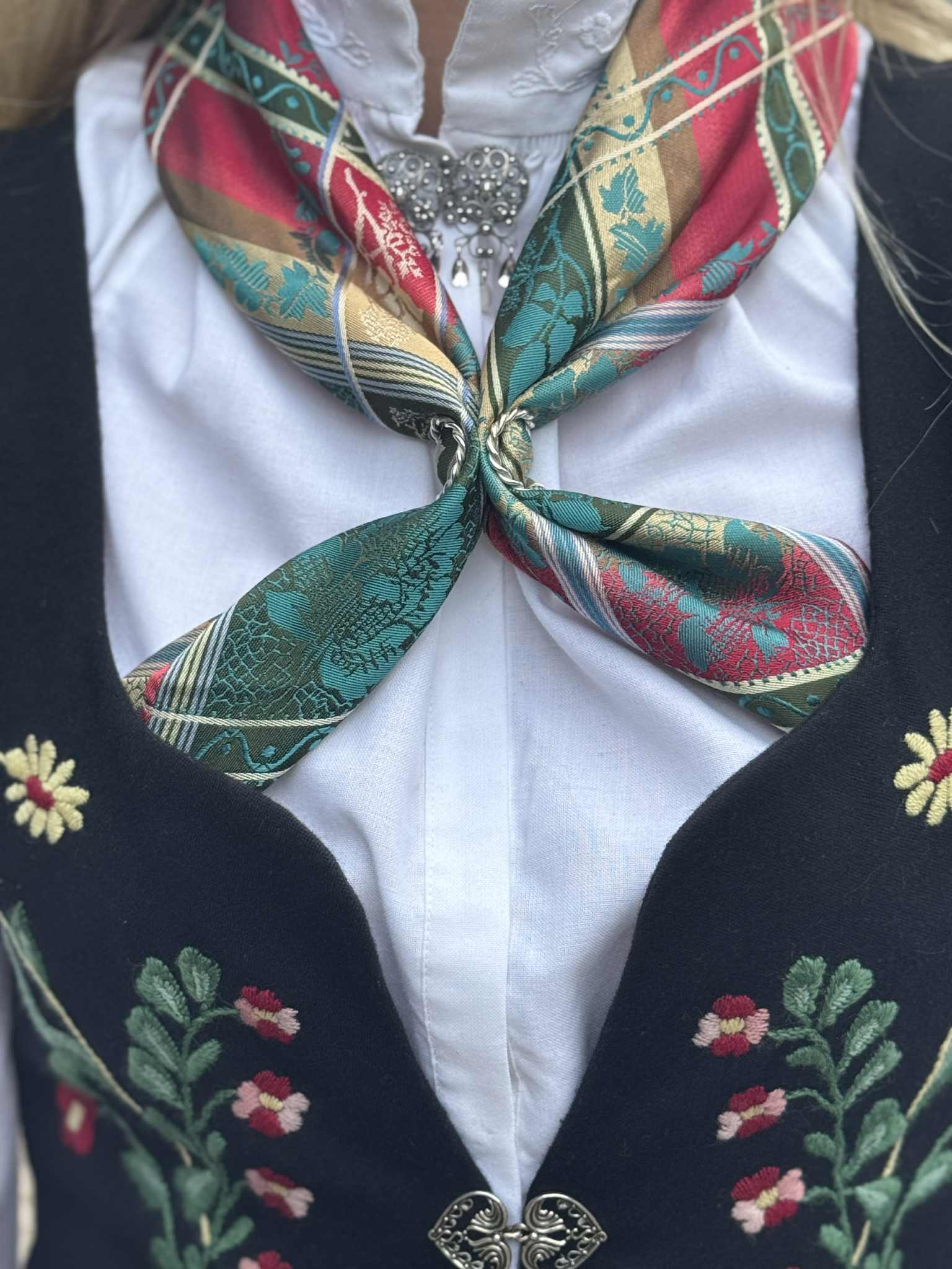 Vår egenproduserte skjerf-ring er designet for å samle silkeskjerfet på en vakker og funksjonell måte - enten det er til bunad, festdrakt eller andre høytidelige antrekk.